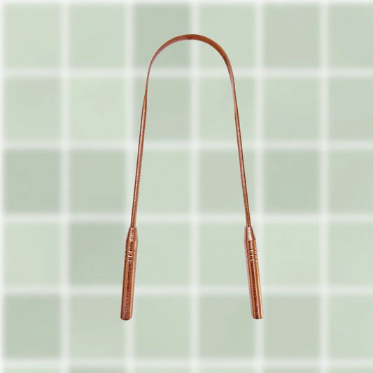 Pure Copper: For centuries the Ayurvedic practice of tongue scraping with copper has been used for it's medicinal benefits. It's natural anti-microbial and anti-bacterial properties make it an effective tool for promoting oral hygiene, however, it tarnishes and requires extra care.